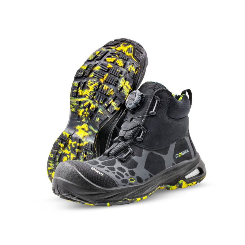 COBRA ROLLER HIGH+S3 – batai su kompozitiniu metalų neturinčiu antpadu, kuris efektyviai apsaugo pirštus ir izoliuoja nuo temperatūros pokyčių. Plieno vidpadis atsparus pradurimui (1100 N), atitinka EN ISO 20345:2022 standartą.