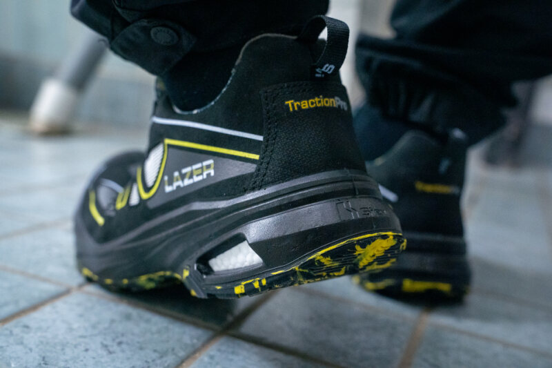 LAZER FREE ROLLER+ S1P – lengvi ir patvarūs apsauginiai batai su modernia BOA® suveržimo sistema, leidžiančia greitai ir tiksliai reguliuoti prigludimą. Kompozitinė noselė ir plieninė pradūrimui atspari pado apsauga atitinka S1P saugos reikalavimus. FlexEnergy® elementas kartu su specialiomis angomis kulno srityje suteikia dar geresnį lankstumą ir amortizaciją, o šoninis tinklelis pagerina bato kvėpavimą intensyvaus darbo metu. TractionPro® trinties padas užtikrina puikų sukibimą įvairiomis sąlygomis. ESD saugūs.