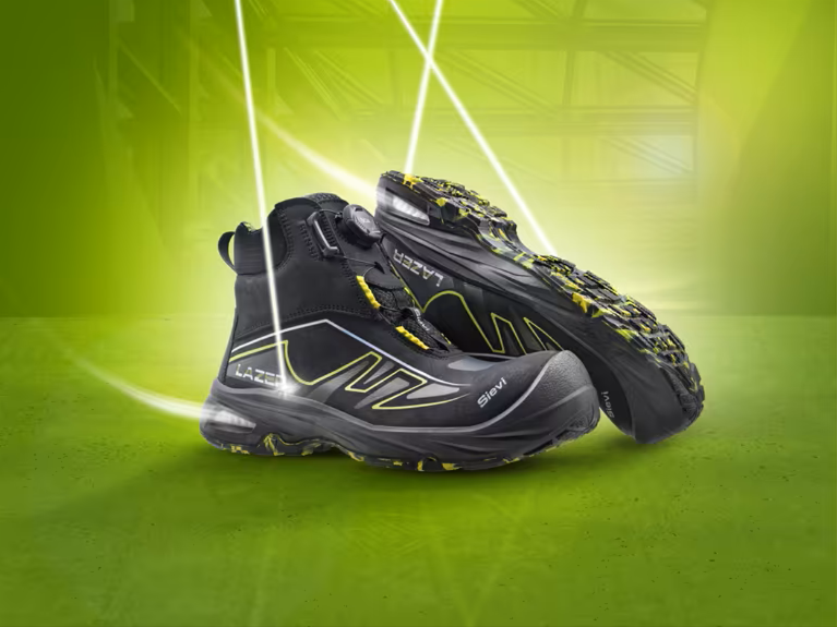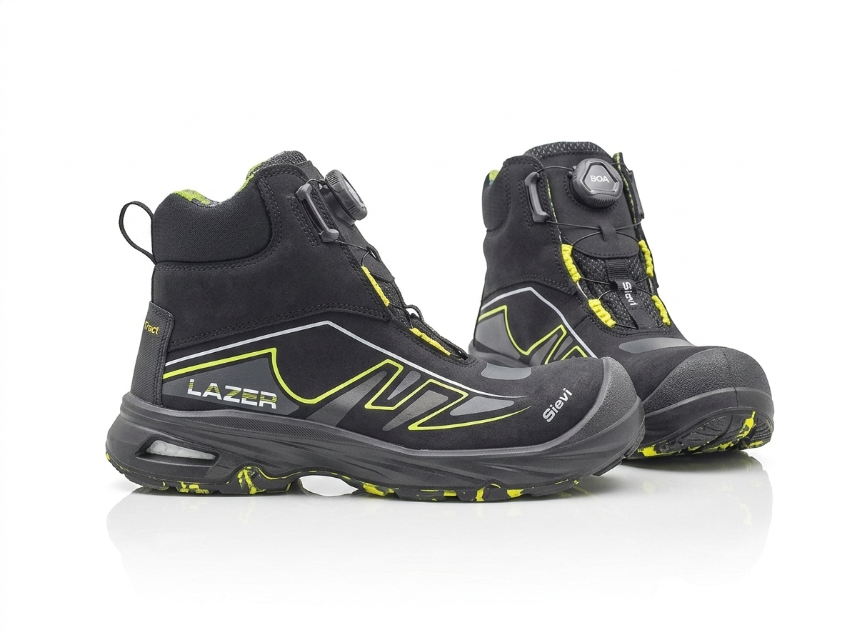 Sievi Lazer Roller High+ S3 batai pasižymi FlexEnergy® kulno amortizacija, matoma per pado angą, leidžiančia didesnį lankstumą ir komfortą. Avalynė turi kompozitinį metalų neturintį antpadį, kuris puikiai izoliuoja nuo karščio ir šalčio bei atitinka EN ISO 20345:2022 standartą.